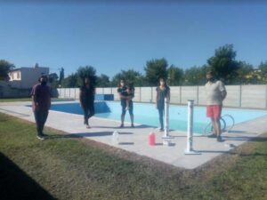 Es por esto que la Dirección de Deportes provee los tótem sanitizantes, alcohol en gel, jabón líquido, toallas de papel, y los dispencer correspondientes, pintura y cloro, como así también el sueldo de los Guardavidas que van a instalarse en cada una de las comunidades.