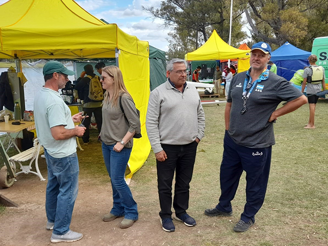 En una jornada que comenzó con lluvia el Intendente Eduardo Campana recorrió este sábado por la tarde el Parque Municipal donde se está llevando a cabo el Selectivo Nacional de Canotaje. En la oportunidad estuvo acompañado por la Jefa de Gabinete Marina Justo y se reunió con Hugo Cabral, Presidente de la Federación Argentina de Canoas (FAC).