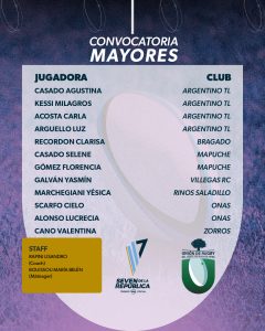 Entre las 12 seleccionadas aparece el nombre de la villeguense Yasmín Galván para integrarse al combinado oficial de la UROBA que participará en el Seven de la República a disputarse el próximo fin de semana, sábado 7 y domingo 8 en Paraná, Entre Ríos.