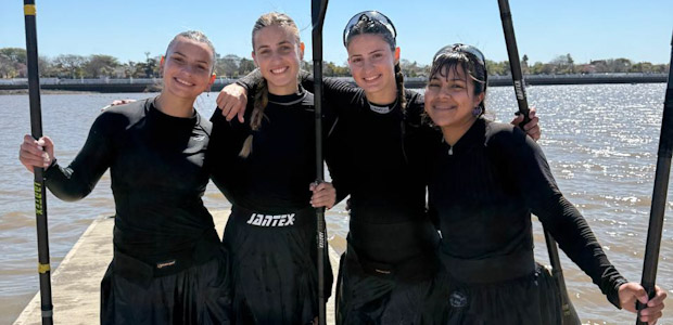 Victoria Gorriz Collado (la primera desde la derecha), palista del club de remo La Botera, de General Villegas, represetando a la provincia de Buenos Aires en K4, obtuvo Medalla de Plata en los Juegos Argentinos de Alto Rendimiento (JADAR 2025).
