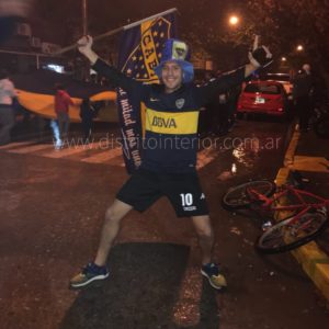 En General Villegas a pesar de la intensa lluvia durante el partido, los fanáticos coparon el centro de la ciudad tiñiendo de azul y oro las calles.