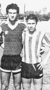 Marcelo Maldonado, su padre, posando junto a J. L. Pelosi en 1989 para Atlético Villegas