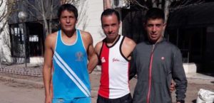 Los atletas Emiliano Bustos y Osvaldo Barreto, lograron el 1° y 2° lugar en la general respectivamente, en la fotografía se los ve junto a Mauro Cabral, de Junín que se ubicó 3°.