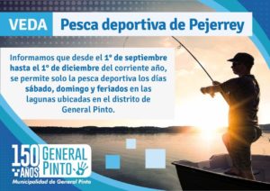 Veda de la pesca del pejerrey, comunicado de la Municipalidad de Gral. Pinto