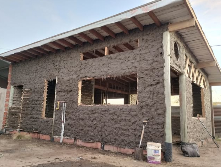Allí Matías aprendió la técnica constructiva del lugar, y junto a Victoria, que ya cuentan con la experiencia de otras obras realizadas, ahora la reactivan en la Ampliación Urbana. Ya levantaron una para un familiar y actualmente avanzan hacia la casa propia, en la calle Frank, casi Jauretche.