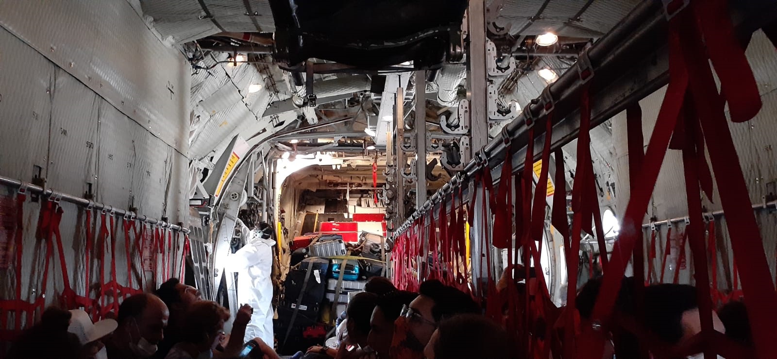 María Juana Traverso acaba de iniciar el vuelo en uno de los dos Hércules que partieron desde Lima repatriando a 140 argentinos (70 por avión). Son 700 en total los que regresarán al país.