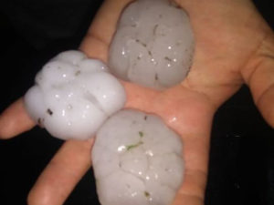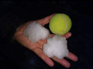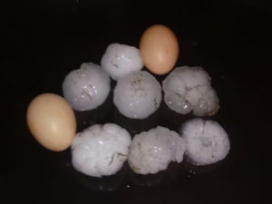 Piedras del tamaño de una pelota de tenis y en algunos casos de mayor tamaño son las que han podido registrarse en este fenómeno meteorológico (tal cual lo reflejan las imágenes) que ha ocasionado serios daños sobre todo en los sectores rurales donde se esta levantando la cosecha, tanto de maíz como de soja.