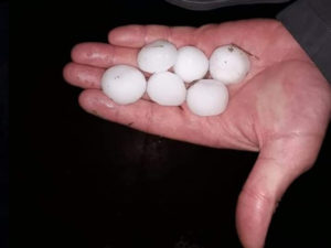La tormenta que se dejó sentir en horas de la noche, dejó su rastro el varias localidades del norte pampeano. En algunos casos cayó una pedrada importante que habría causado daños de consideración en techos y sembrados.