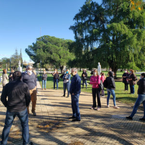 Unas 50 personas se concentran en la Palza Principal a la espera de ser recibidos por el intendente u otra autoridad municipal para presentar una propuesta que les permita atender al público respetando las medidas de seguridad.