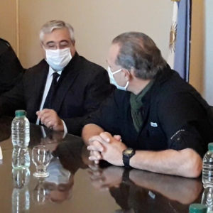 Luego de un breve encuentro en el despacho del jefe comunal con un reducido grupo de colaboradores de ambas partes, pasaron al Salón del los Acuerdos donde se llevará a cabo el encue telo con la prensa. Allí se darán a conocer los temas tratados.