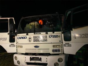 En el caso de anoche eran cerca de las 23:30 hs. cuando el camión Ford Cargo se dirigía con cuatro empleados a bordo hacia el basurero luego de haber completado el recorrido por la Av. Mitre.