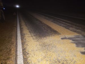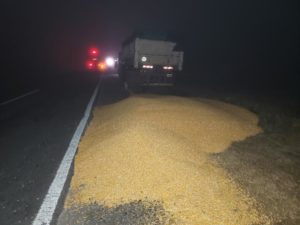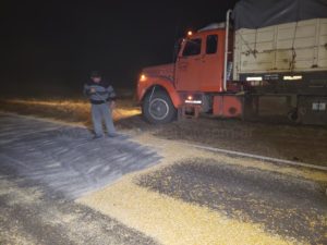 Como consecuencia parte de la carga de maíz se desparramó sobre el asfalto a lo largo de unos 150 metros.