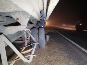 El hecho ocurrió esta noche a la altura del kilómetro 409 en cercanías de Pradere. La rotura se observaba entre el piso y uno de los laterales del acoplado.
