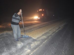 Dada la demora ante el pedido de auxilio, el chofer del camión dañado, domiciliado en Rufino y procedente de Buchardo, donde había realizado la carga, tomó un escobillón y comenzó a retirar el cereal del asfalto para evitar mayores inconvenientes.