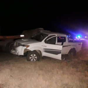 De acuerdo a los primeros datos a los que accedimos el conductor de la camioneta transitaba por el camino de tierra y al subir a la ruta habría sido embestido por el camión que circulaba hacia Ameghino e impactó sobre el lateral izquierdo de la camioneta.