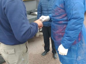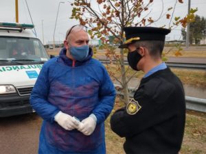 El conductor había ingresado al supermercado. Al ubicarlo procedieron a labrarle el acta de infracción y se convocó al Servicio de Emergencias Médicas quién le tomó la temperatura y completó una planilla de acuerdo a como indica el procedimiento ante estos casos.
