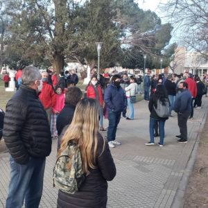 Apenas pasadas las 18:00 hs. un importante número de vecinos se acercan al centro de la ciudad para pedir por el niño que fue atropellado por una moto y su conductor se encuentra en libertad.