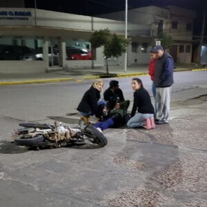 Según contó éste a Ditrito Interior circulaba por Sarmiento y al tomar hacia la derecha por Moreno observó por el espejo retrovisor a la moto y su conductora caídas, por lo que inmediatamente detuvo la marcha. Por su parte la conductora no dio detalles, sin que se pudiera establecer por dónde transitaba, si frenó y se cayó o la caída fue producto de un roce.