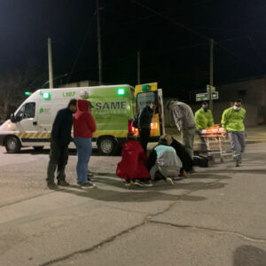Luego del hecho que dejó a la mujer que se movilizaba en el rodado menor, tendida en el suelo, arribó al lugar el SAME que la trasladó al hospital. Golpeada y con un corte en la frente.