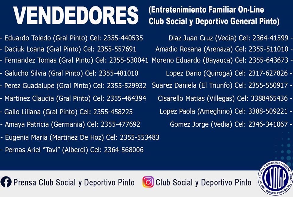 Gral. Pinto: el club Deportivo lanzó un Entretenimiento Familiar on line y los cartones se pueden adquirir también en Gral. Villegas