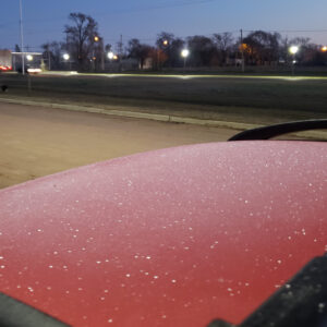 Ayer al caer el día podían observarse las primeras estrellas que aparecían detrás de las nubes que se iban, pero el viento hacía presumir que despejaria el cielo y hoy sería una jornada fría, pero no más que eso; sin embargo el nuevo día sorprende con otra helada que se deja ver principalmente sobre los automóviles que «durmieron afuera».