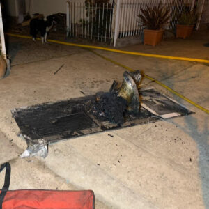 En estos momentos los voluntarios trabajaban en el interior de la estructura a la que accedieron por un portón lateral que da al patio y comenzaban retiraron algunos elementos del interior, como una puerta de aluminio, dañada por las llamas.
