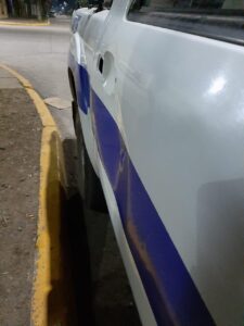 Uno de ellos se resiste a ser notificado del Aislamiento Preventivo Obligativo y agrede a personal policial mediante golpes de puño, para luego darse a la fuga siendo interceptado a 100 metros del lugar; lejos de bajar su hostilidad, el sujetó toma un cuadro de bicicleta que se hallaba tirado sobre la vereda y lo arroja hacia el móvil provocándole rotura en puerta trasera lateral derecha y rotura de manija en la apertura de misma puerta del vehículo.