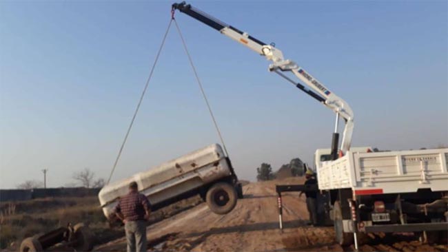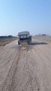 Por ese motivo, según publica en su perfil FM San José, la Cooperativa Vial a través de María Rosa Pasquale y su esposo, Diego Rangone, estuvo regando en el tramo mencionado con un tanque regador suministrado por la Municipalidad que en medio del trabajo sufrió una importante avería que requirió de la intervención de la cooperativa eléctrica para ponerlo nuevamente sobre el camino.