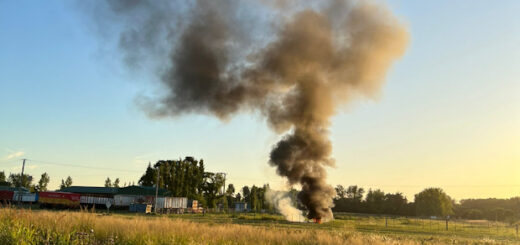 Una mala maniobra dejó a un camión que tiraba un tráiler tipo «mosquito» dedicado al traslado de vehículos atravesado sobre la traza, ocupando ambas manos.