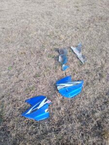 Como se observa, las partes son de una moto de color azul fueron descartadas en el lugar.
