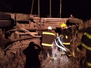 Eran cerca de las 21:00 hs. cuando los Bomberos Voluntarios de Charlone acudieron al lugar socorriendo al hombre que había salido por sus propios medios del habitáculo, ileso.