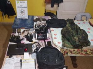 Allí se detuvo en el Barrio Evita a Leonardo Andrés Cader (30) y se procedió al secuestro de una flota de 9 handyes con frecuencia policial, 15 celulares última generación, dinero en efectivo, tablets, prendas de vestir; todos efectos que hacen a la cuestión probatoria de la compleja investigación y serán motivo de análisis por los Peritos Especializados del Ministerio Publico Fiscal Trenque Lauquen.