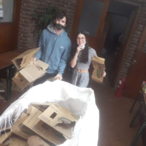 Como a todos la pandemia ha afectado de alguna manera a la institución educativa por lo que tomó la cooperadora junto a directivos tomó la iniciativa de juntar cartón que se vende a una empresa local con el objeto de mantener la caja con la que se afrontan los gastos corrientes como alarmas, papel, ayuda a algunos alumnos, etc.