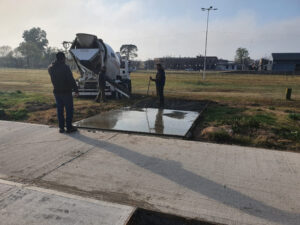 Por otro lado, el Secretario de Planificación Arq. Daniel Cepa junto al Director de Servicios Urbanos Carlos Ullúa, supervisaron los avances en el hormigonado de losa que se está ejecutando en el predio del ferrocarril de acuerdo con el Proyecto Plan Hábitat – Barrio Ciclón, informó Prensa del municipio.