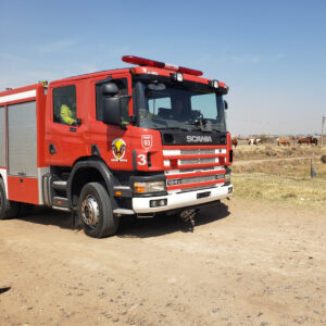 Ocurre en cercanías del tanque roto, dentro de un predio en el que las llamas por efecto del viento se propagan con velocidad hacia otros postes.