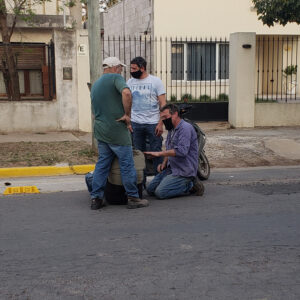 Uno de los autos, un Chevrolet Onix gris que luego de unos minutos se retiró del lugar habría encerrado al motociclista provocando que éste se fuera contra la Chery Tiggo a la que impactó en la puerta izquierda derecha cayendo sobre su lateral.