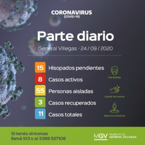 Covid-19 – GRAL. VILLEGAS: el último informe del día indica tres hisopados más y sin nuevos casos