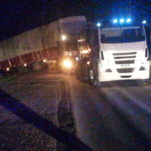 Al parecer el chófer subía a la ruta desde lamciudad por un camino de tierra cuando, luego de pasar el chasis, el semirremolque se «calzó» en la cuneta impidiendo que pudiera seguir avanzando.