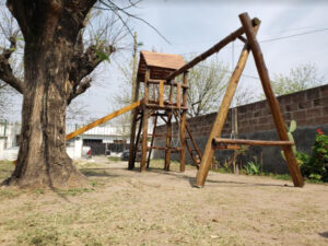 El joven constructor de juegos rústicos inició hace relativamente poco tiempo con esta iniciativa que ya es disfrutada no solamente en la ciudad y el distrito, sino también en ciudades de provincias vecinas.