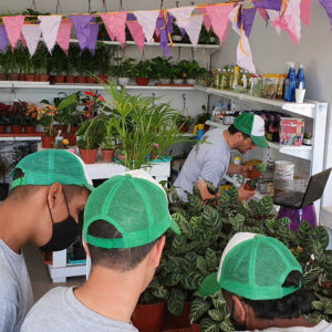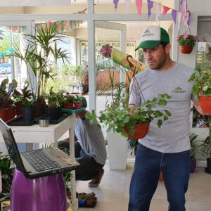 Los clientes siguen la transmisión en vivo en la que Lucio, con la asistencia de Jorgelina, su esposa, y el grupo de trabajadores que lo acompañan, va exhibiendo las plantas, macetas, semillas y otros productos, mientras del otro lado van haciendo consultas, pedidos o concretando la compra.
