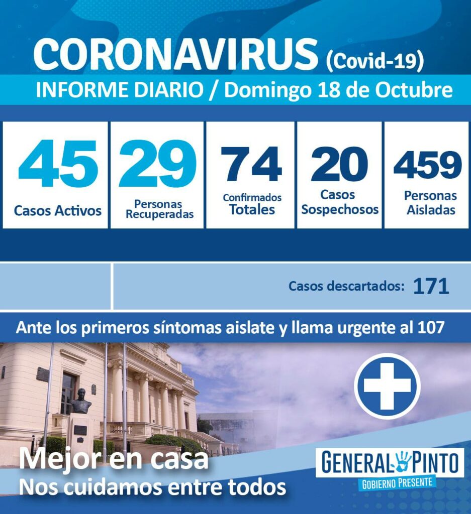 General Pinto: 11 nuevos casos positivos y 5 recuperados (Informe del 18/10/2020)