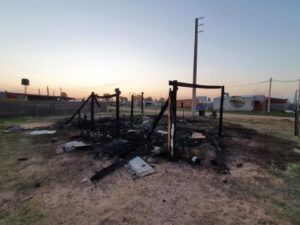 La familia se había retirado del lugar no encentrándose cuando los vecinos advirtieron las llamas que rápidamente se propagaban por la construcción de palos, palets, chapas y silo bolsa consumiendo todo a su paso.