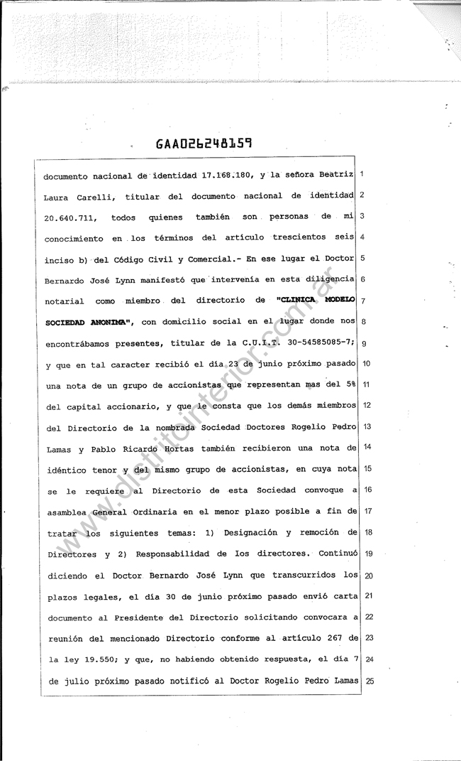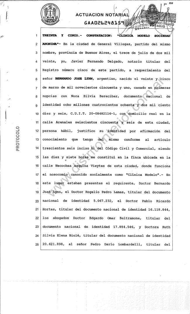 El representante legal de los accionistas de la clínica Modelo, Edgardo Beltramone, respondió a la abogada de la familia Lamas, Tamara Madero quien había dicho que el allanamiento realizado en la calle Pueyrredón 178 de Gral. Villegas el pasado 12 de noviembre había sido la consecuencia de una maniobra llevada a cabo por el actual Directorio que pretende lastimar la imagen de Dr. Rogelio Lamas y que éste había sido utilizado mediaticamente por la otra parte.