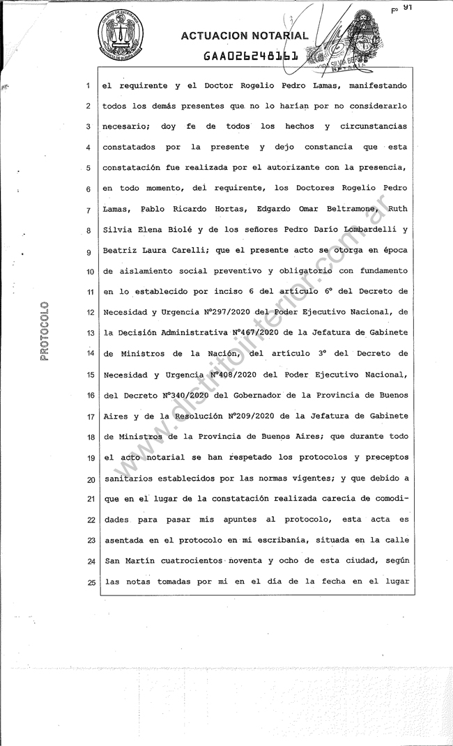 Beltramone fue categórico al desmentir algunos puntos a los que la Dra. Madero se refirió, como la falta de los Libros Contables por los que ante el escribano Javier Delgado y en presencia del propio Lamas se dejó asentado la falta de éstos oportunamente. En un pasaje del reportaje menciona que facilitaría esa prueba y finalmente lo hizo a Distrito Interior, por lo que aparece publicada al final de esta nota).