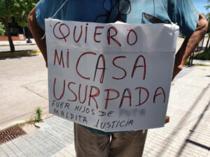 Olaizola protestó en las calles por la devolución de su casa usurpada y piensa en un Proyecto para que la Policía pueda actuar espontáneamente en estos casos