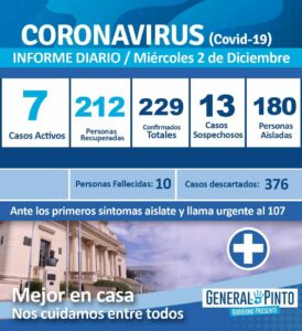 Así lo indican los números: continúa mejorando la situación Covid en Gral. Pinto