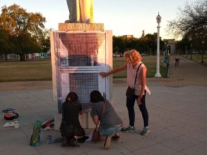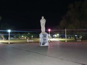 Esta noche, luego del llamado de Gómez y cuando nos dirigíamos hacia la plaza un mensaje recibido a nuestro Wathsapp (3388 672080) nos hacía un comentario similar, pero acompañado con una fotografía que mostraba esta tarde, cerca de las 18:00 hs, como tres mujeres realizaban la tarea mencionada. La persona que nos proveyó el material contó que al consultarlas, no le respondieron a quién representaban o a qué se debía lo que estaban realizando.