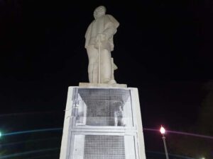 Esta noche fuimos alertados por un vecino y lector de Distrito Interior, Rafael Gómez, quien no tiene inconvenientes en que lo mencionemos, que al pasar esta noche por el centro de la Plaza Principal se sorprendió por el estado en que fue «decorado» el monumento a Conrado Villegas.