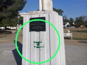 Indignación por la empapelada y pintada al monumento de Conrado Villegas en la Plaza Principal