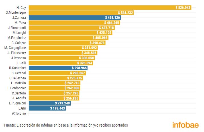 En otros 10 distritos, los salarios de los jefes comunales están incluidos en las escalas salariales locales publicadas en la web municipal. Así es posible ver online el de Martín Yeza, de Pinamar; el de Guillermo Montenegro, de Mar del Plata; el de Ezequiel Galli, de Olavarría; el de Cecilo Salazar, de San Pedro; el de Salvador Serenal, de Lincoln; y el de Javier Andrés, de Adolfo Alsina, todos de Juntos por el Cambio. Del oficialista Frente de Todos, aparecen los sueldos básicos de Julio Zamora, de Tigre; de Ricardo Curutchet, de Marcos Paz; de Luis Ignacio Pugnaloni, de Hipólito Yrigoyen; y el de Walter Torchio, de Carlos Casares.
